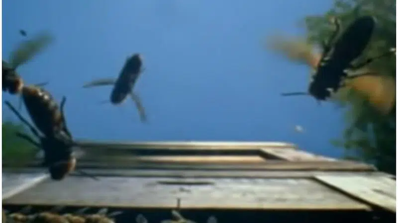 The large insects have earned the nickname ‘murder hornets’ for the way they wipe out entire honey bee colonies, decapitating the bees and using them as food for their young.