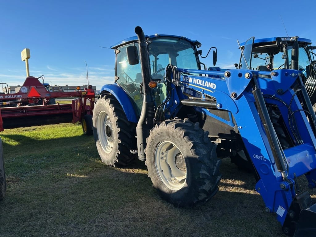 2019 New Holland Powerstar 120 Tractor; 100 PTO HP, Deluxe Cab, 12×12 Power Shuttle, Shuttle Shift, Self Level Loader with Skidsteer Quick attach